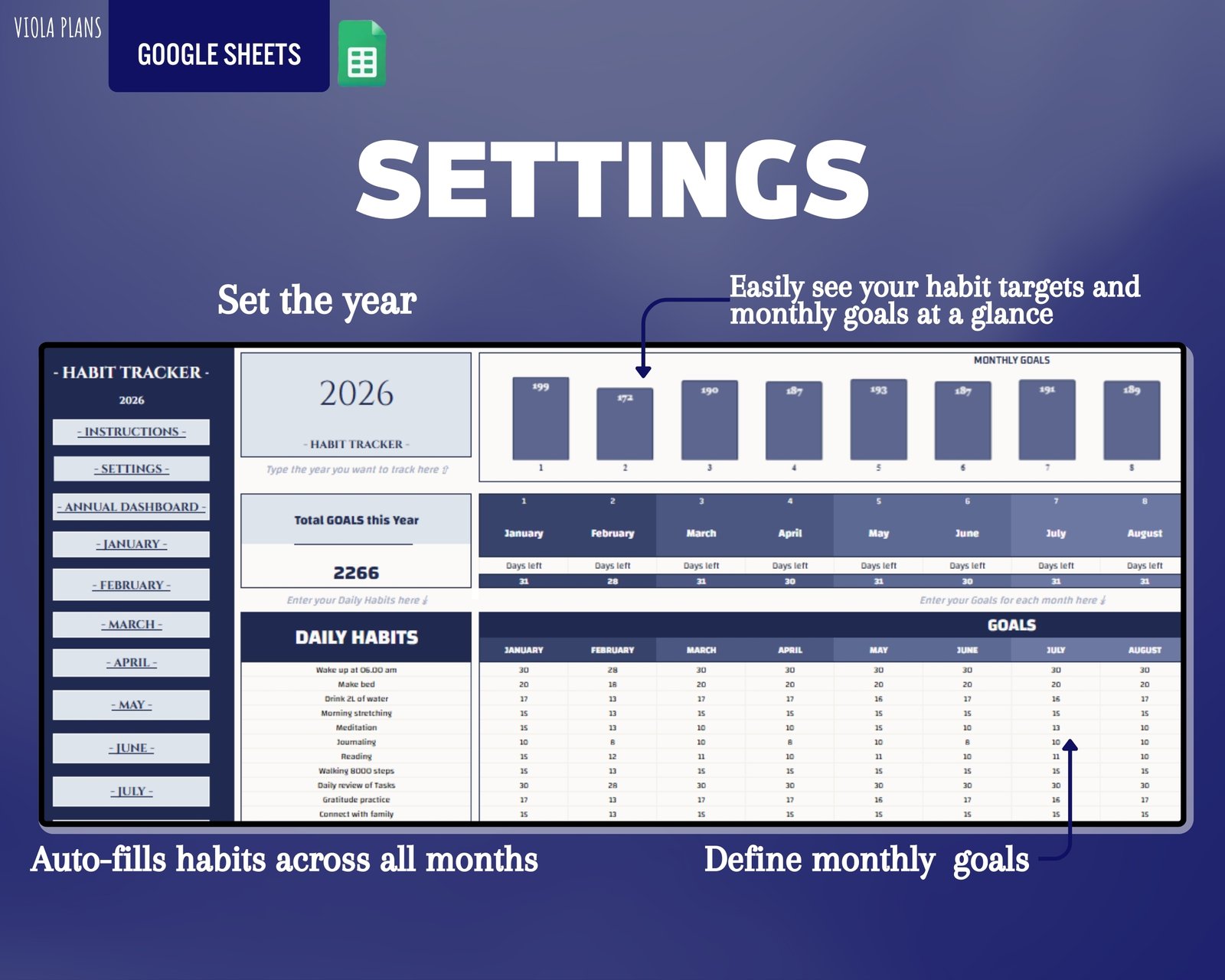 > 100% Automated: Input your habits once in the Settings tab, and they automatically populate across all 12 monthly sheetsβno need to rewrite anything!